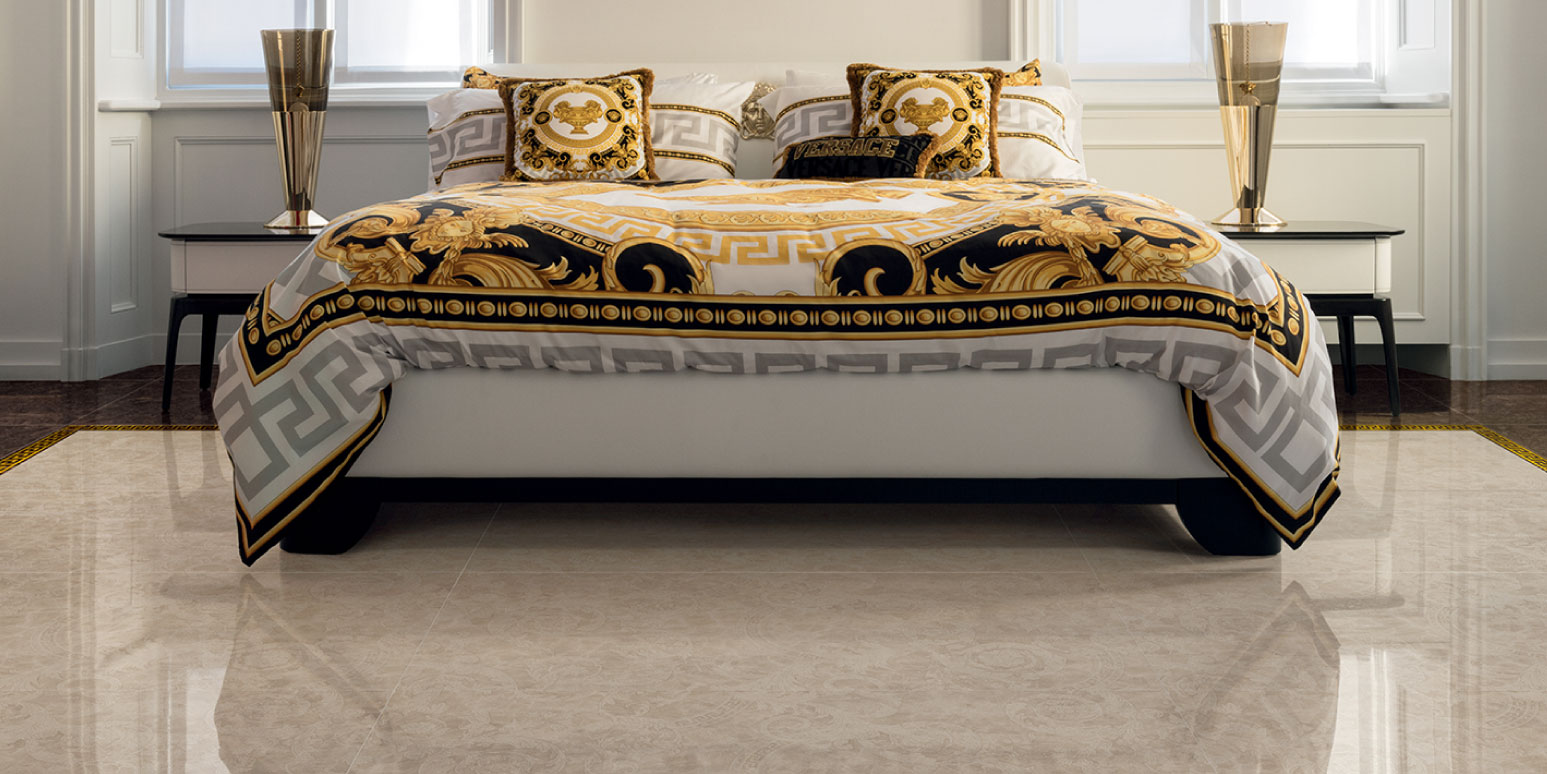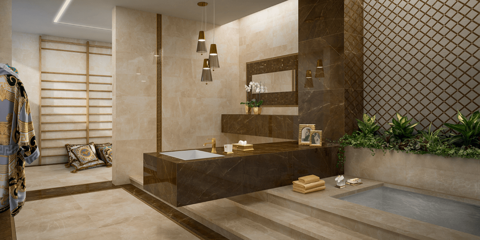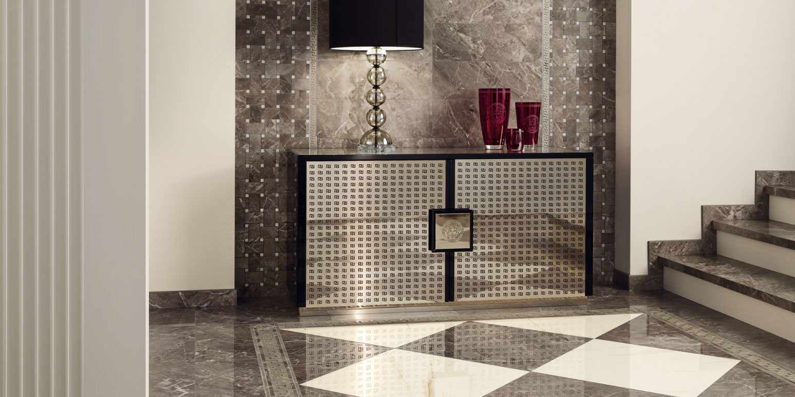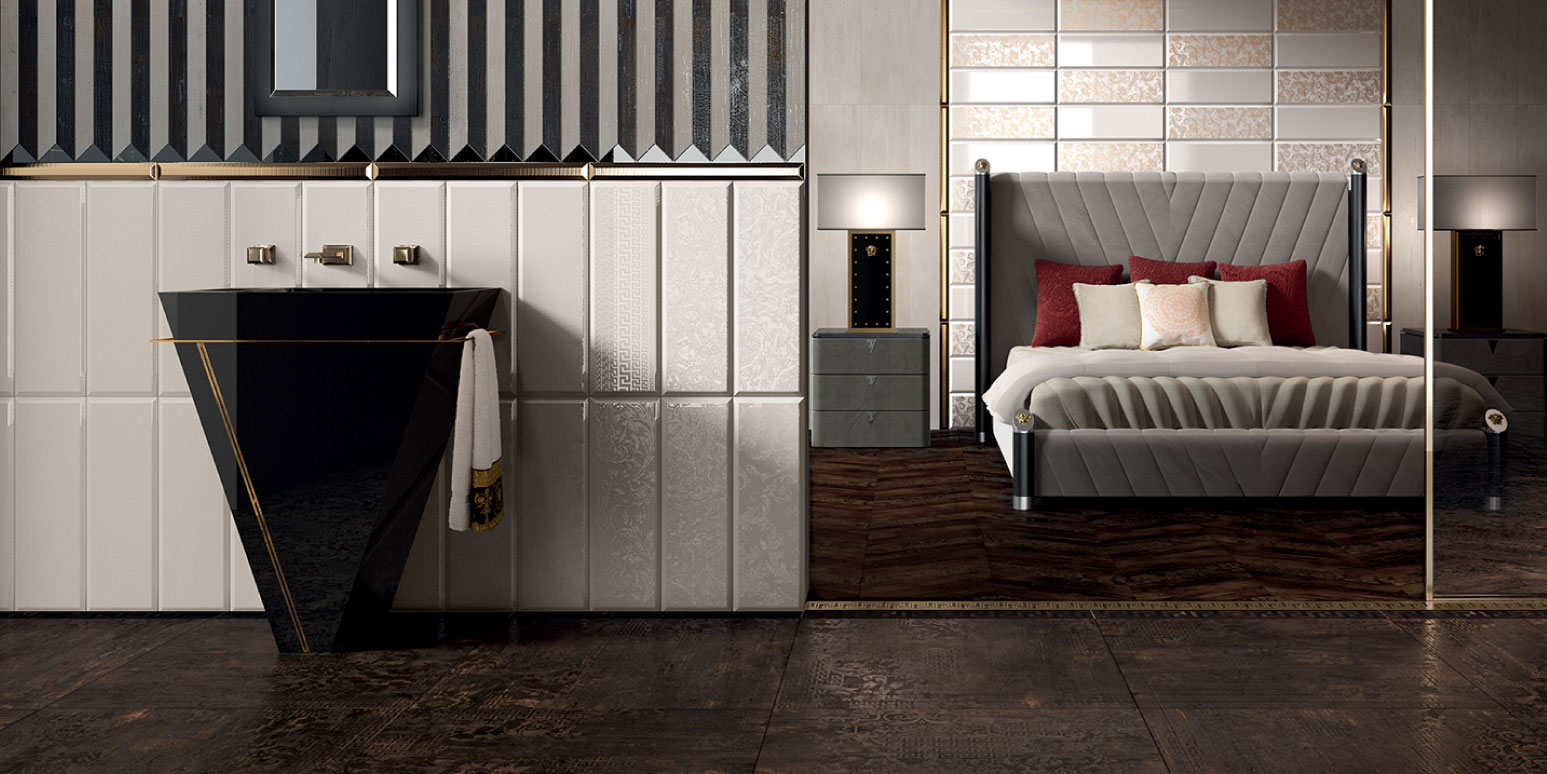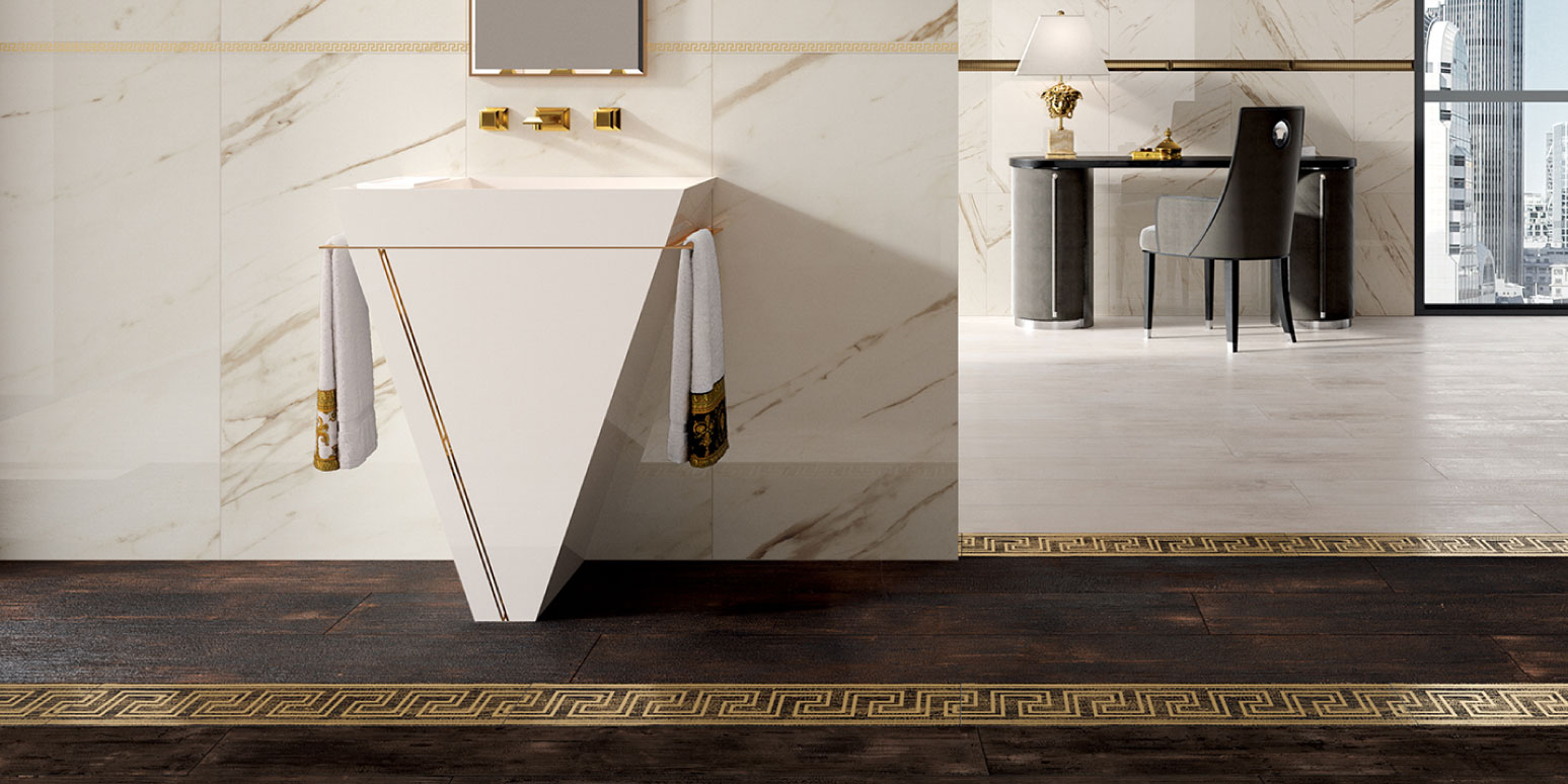 A living project completed with a line of bathroom furnishings for an All-Round Look showcasing Versace's unmistakable style.